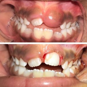 Surgical exposure of un erupted tooth. Sometimes nature can use a bit of professional intervention to continue development on track.